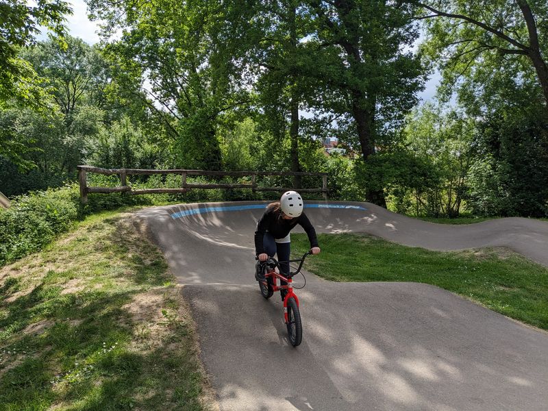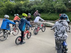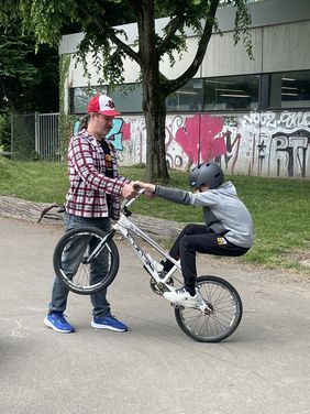 Nach einer kurzen Einführung – etwa zur richtigen Körperhaltung auf dem BMX und den wichtigsten Verhaltensregeln auf dem Track – legten die Kinder direkt los. Mutig und mit viel Begeisterung sausten sie über den Pumptrack. Die Freude war spürbar, die Gesichter strahlten – und niemand wollte das Rad wieder abgeben. Ein voller Erfolg!
