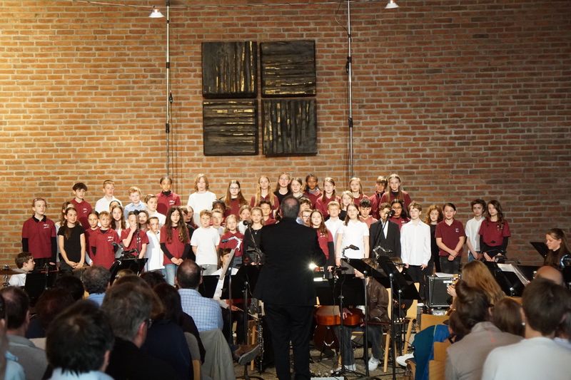 Unsere Fünftklässler eröffneten das Konzert in der an beiden Tagen vollbesetzten Kirche und stimmten das gespannte Publikum mit einem schwungvollen Kanon und Taylor Swift in den Abend ein. Sie ermöglichten dabei einen überzeugenden Einblick in den Musikunterricht bei Hanna Montes und Markus Dippold, in dem Musikpraxis, die den Kindern Spaß macht, selbstverständlich ist.