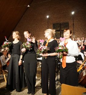 Weiter ging es mit den großen Chorsängerinnen und -sängern, die die Herausforderung wunderbar und temperamentvoll meisterten, das R’n’B-Stück „Hit the road, Jack“ von Ray Charles A cappella zu singen. Das Broadwaystück „Feeling good“ hat es in sich: Der Bluescharakter ist nicht leicht aus jugendlichen Kehlen herauszukitzeln. Umso stimmlich beeindruckender war die saubere und kraftvolle Interpretation, die das Publikum genauso begeisterte wie „What about us“, das mit gekonnten solistischen Partien von Sängerinnen garniert wurde – ein wahrer Ohrenschmaus, den die Sängerinnen und Sänger unter der Leitung von Mirjam Borchert darboten.
